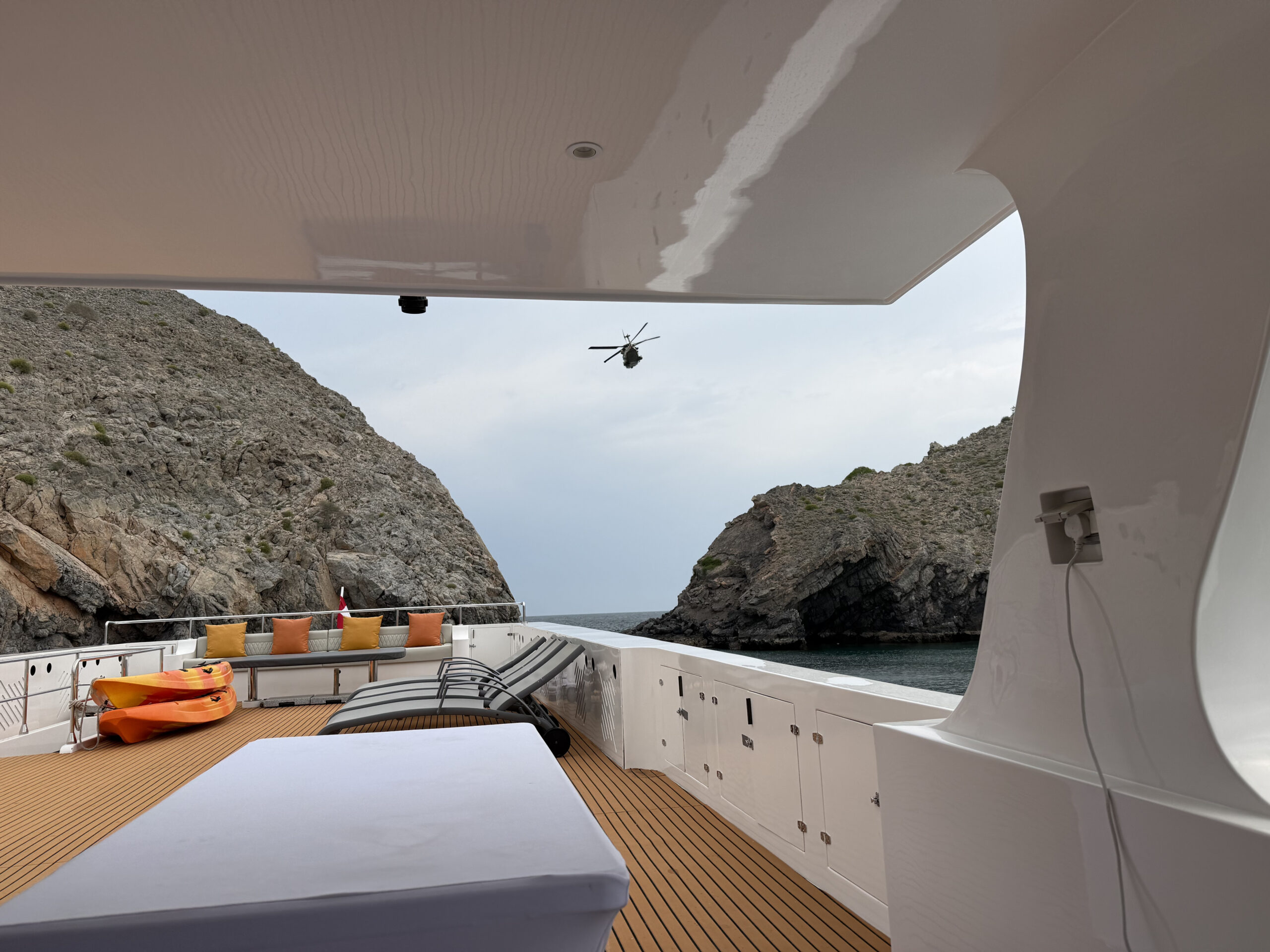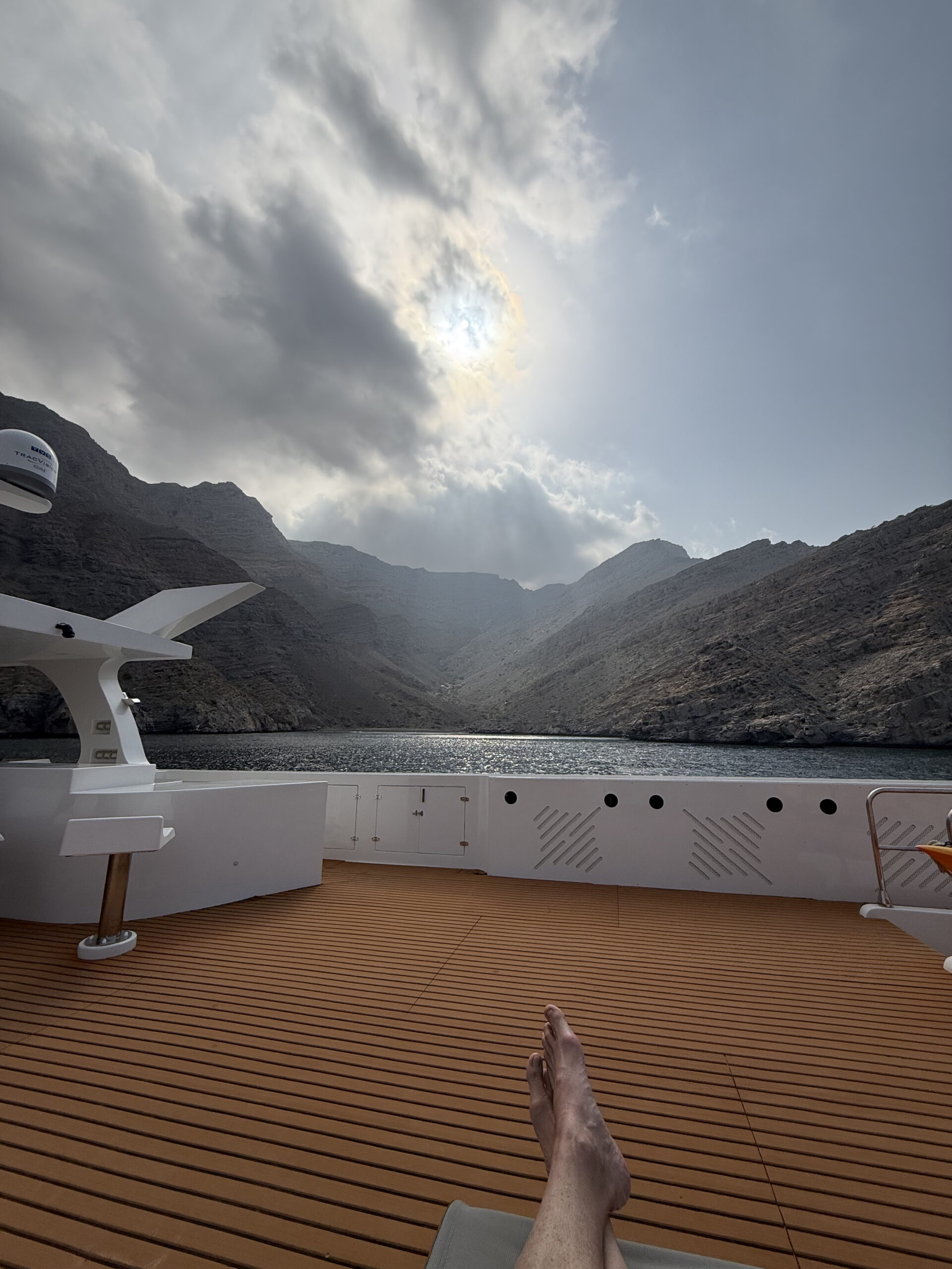 The landscape is prehistoric here. All limestone mountains and rugged terrain. During our trip we made it all the way to the Straight of Hormuz and got greeted after a dive by an Omani gun boat and later buzzed by a military helicopter. They take keeping the Iranians inline seriously!